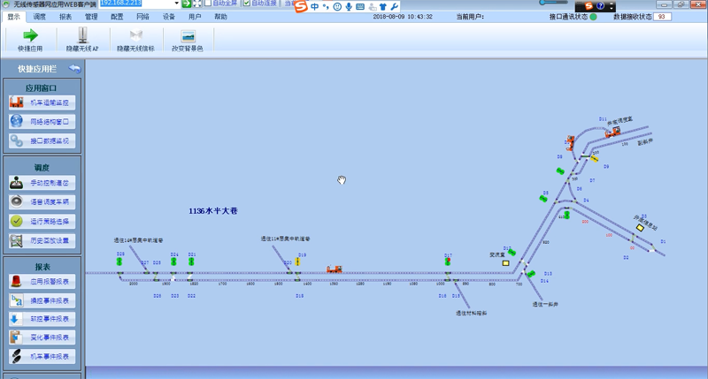 徐州睿豐智能研發(fā)的礦用軌道運(yùn)輸監(jiān)控系統(tǒng)上位機(jī)軟件采用B/S或C/S構(gòu)架,可以實(shí)現(xiàn)多WEB客戶端或?qū)S每蛻舳藨?yīng)用。硬件采用CAN總線或以太網(wǎng)作為傳輸層進(jìn)行通信,現(xiàn)場(chǎng)CAN總線連接的所有無(wú)線基站(無(wú)線網(wǎng)關(guān))到CAN-以太網(wǎng)網(wǎng)關(guān),然后接入上位機(jī)所在的工業(yè)以太網(wǎng),或者所有無(wú)線通過(guò)網(wǎng)口直接與上位機(jī)通信。其他所有現(xiàn)場(chǎng)設(shè)備都是通過(guò)無(wú)線自組織網(wǎng)絡(luò)和無(wú)線基站通信。車(chē)載機(jī)作為移動(dòng)設(shè)備可以快速在無(wú)線基站間數(shù)據(jù)漫游?,F(xiàn)場(chǎng)道岔控制器和信號(hào)燈等非移動(dòng)設(shè)備都可以作為無(wú)線路由中繼對(duì)無(wú)線數(shù)據(jù)進(jìn)行路由,大量減少了設(shè)備使用量,減少了用戶投資。