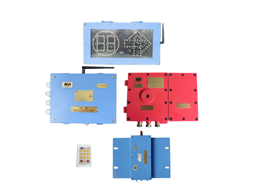 裝置由1臺礦用司控道岔顯示器(以下簡稱顯示器)、1臺礦用氣動司控道岔裝置控制器(以下簡稱控制器)、1臺氣動司控道岔裝置執(zhí)行器(以下簡稱執(zhí)行器)、1臺礦用無線發(fā)射器(以下簡稱發(fā)射器)和1臺礦用直流穩(wěn)壓電源(以下簡稱穩(wěn)壓電源)配套組成。實現(xiàn)就地、手動、遙控、遠(yuǎn)程控制道岔翻轉(zhuǎn)功能。