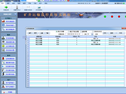 系統(tǒng)是用于惡劣環(huán)境的分布式工業(yè)控制系統(tǒng),系統(tǒng)以工控機(jī)為控制核心,在主控室對(duì)井下的架線電機(jī)車(chē)運(yùn)輸實(shí)現(xiàn)實(shí)時(shí)監(jiān)控和自動(dòng)調(diào)度。主要是控制架線區(qū)段內(nèi)有車(chē)有電無(wú)車(chē)無(wú)電目的。大大降低人員觸電事故的發(fā)生,并能實(shí)時(shí)顯示井下各架線段停送電狀態(tài)、各機(jī)車(chē)位置、車(chē)號(hào)及信號(hào)燈、區(qū)段占用情況,自動(dòng)實(shí)現(xiàn)敵對(duì)進(jìn)路的閉鎖,不允許敵對(duì)信號(hào)同時(shí)開(kāi)放,保障機(jī)車(chē)安全運(yùn)行。系統(tǒng)能隨時(shí)反映設(shè)備和傳感器的工作狀態(tài);故障自動(dòng)診斷、報(bào)警,記錄運(yùn)行過(guò)程數(shù)據(jù),具有報(bào)警、自動(dòng)記錄運(yùn)行過(guò)程數(shù)據(jù)報(bào)表打印等功能。監(jiān)控系統(tǒng)能實(shí)現(xiàn)岔位信號(hào)上傳并實(shí)現(xiàn)道岔的集中監(jiān)視和控制,同時(shí)實(shí)現(xiàn)機(jī)車(chē)車(chē)載按鍵遙控控制架線和道岔的功能。巷道硐室配一臺(tái)服務(wù)器電腦,在井上調(diào)度室設(shè)置一臺(tái)客戶端電腦作為監(jiān)視觀看和操作調(diào)度。